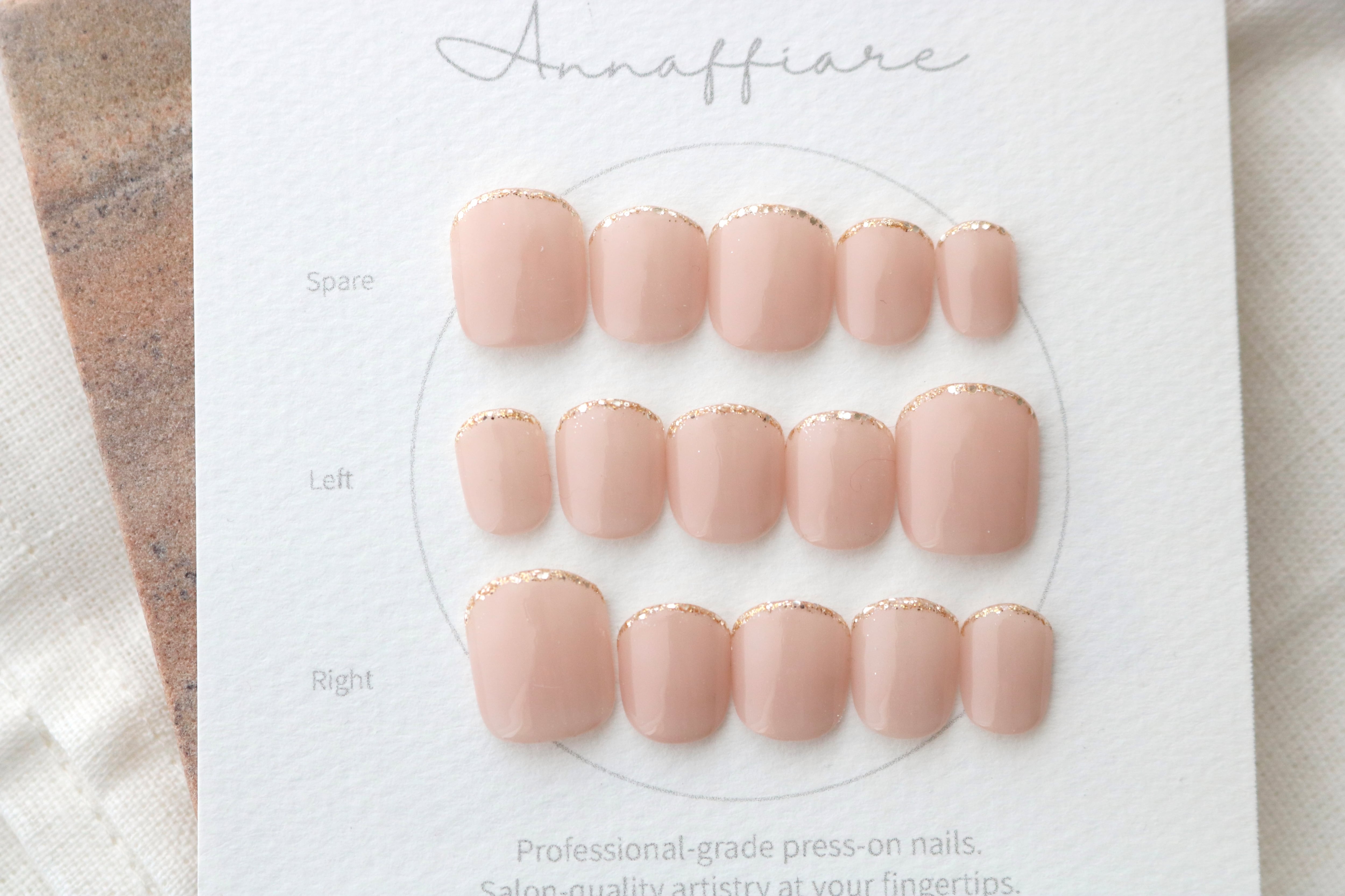うっすら光を通す軽やかなヌードベージュにサロン専売の上品なゴールドラメとホログラム。
